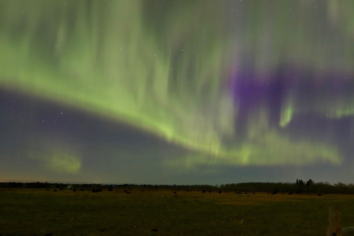 In this photo, there is a large field of cows in the foreground, black angus cows nearly invisible. At the beginning, when I set up my camera, they were a bit interested. The ones closest to me stopped their chewing and eyed me with suspicion. They made a few bellows to their fellows further afield and, quickly realizing I was not a threat, went back to their task at hand. Above them, the lady was dancing up a storm. And they were oblivious. Totally and utterly. In my love of the chase, perhaps I assumed all God’s creatures would stop and watch in awe as I do. But the reality is, they do not. Or maybe it is just black angus cattle that don’t care. I can create the vision in my mind that somewhere behind me a little rabbit is sitting up on his hind legs watching with amazement. I grew up with Disney…that is exactly how things should work. The truth is, not every human is as intrigued by this manifestation of nature as I. In fact, it would seem very few. After seeing my photos so many friends have begged me to tell them when I see the Lady and to let them know, plying me with phone numbers I can text on the fly. I used to make a point of taking the time to text and post on social media…only to get replies like “I’m already in my pajamas” “It’s too cold” “It’s been a long day” which I totally get, if it weren’t 8:30 pm. All valid reasons at any time, really…except that the Lady has a way of energizing, of bringing awe and wonder into our lives that is indescribable – you have to be there to get it. But alas, while I will stand and watch the performance for hours, there are others who look up and say “oh, so that’s it. Nice. Back to Netflix”. Wait. What?