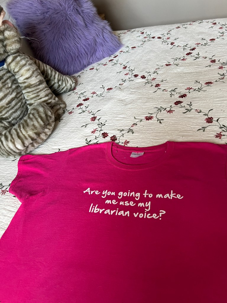 As an adult, I can walk away. You be you and I be me. Kids are not afforded that privilege. I read profusely as a child. It helped me navigate a world in which my parents were emotionally absent and in which my every waking moment was fraught with fear and torment – between alcoholism, emotional abuse, bullying, and familial instability, books saved my life. Many kids are losing the choice now to read what they need to help them navigate their world. And that is where this shirt now serves double duty. Once a librarian, always a librarian and I will continue to use my voice to advocate for all children and for the books that deserve to be on shelves for them to find.