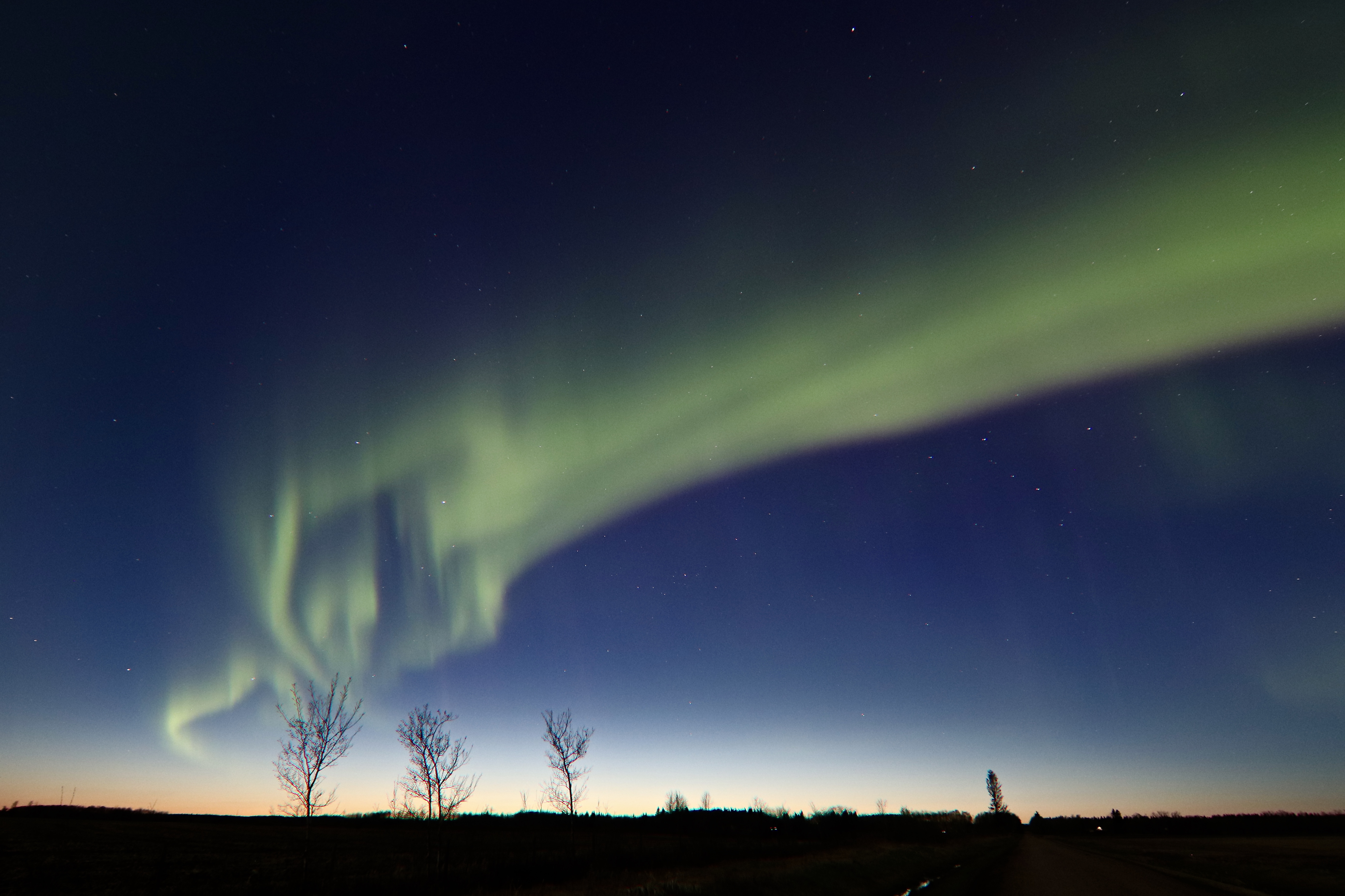 The Lady Aurora appears like a ghostly hand ready to pluck this tree from the landscape in this night sky photo.
