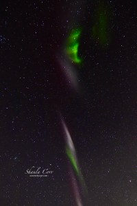 This night sky photo was taken straight overhead of the phenomena known as S.T.E.V.E. (strong thermal emission velocity enhancement) It has the appearance a beautiful flower in a vase of stars.