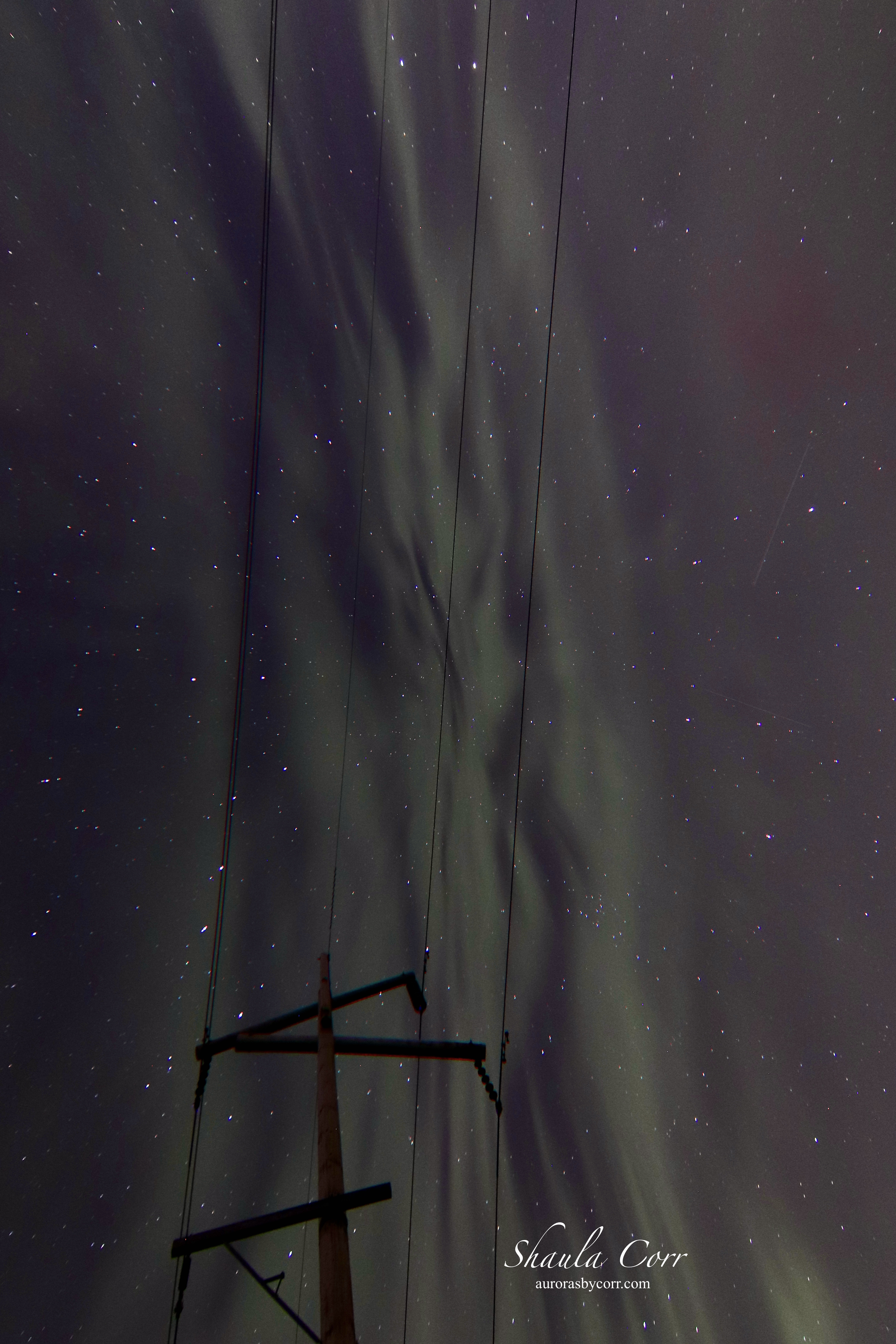This night sky photo of the Aurora Borealis brings yet another facet to the heavens. The appearance of a swiftly flowing river of magnetic energy – boldly making a statement in grey.